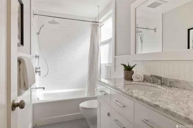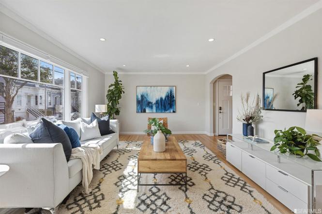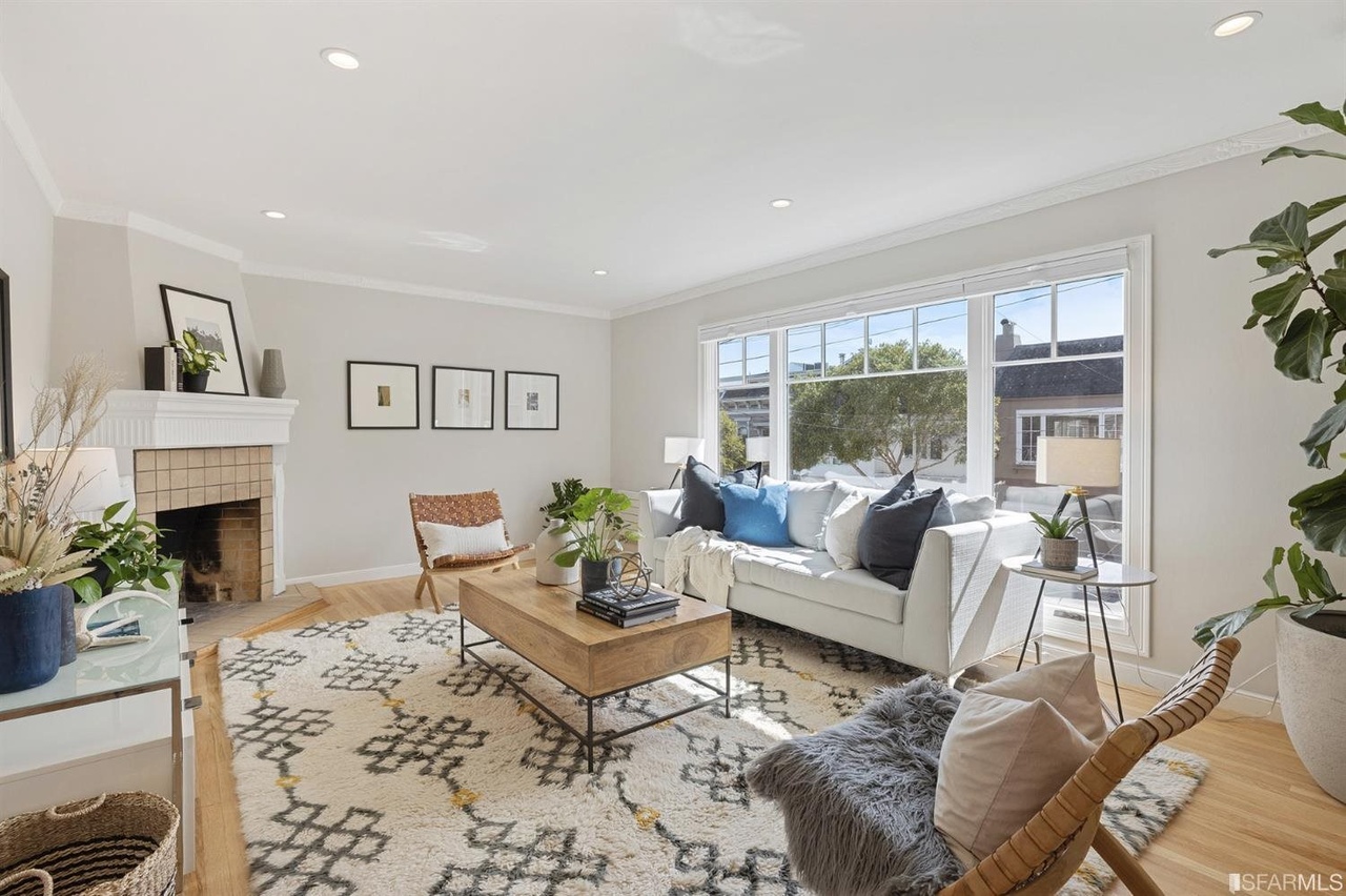 Awash in light from expansive windows and skylights, this sunny home is a wonderful combination of original details and thoughtful updates for modern living including the comfort of radiant heat. The main level boasts an expansive living room and chef's kitchen with stainless steel appliances, marble counters and abundant cabinetry. The spacious primary suite has a beautifully-appointed bath with dual marble vanity. This level is completed by a generous guest bedroom with walk-in closet, additional full bath and a den ideal for working from home. On the lower level the legal studio unit with an elegantly remodeled kitchen and bath is well-suited for your guests, nanny or working from home. On a rare over-sized lot, the deep private garden is ideal for entertaining and enjoying Noe Valley's treasured warm weather. The home is completed by an immaculate laundry, parking for one car and abundant storage. Very convenient to Noe's shops and cafes, the J-Church line and I-280.